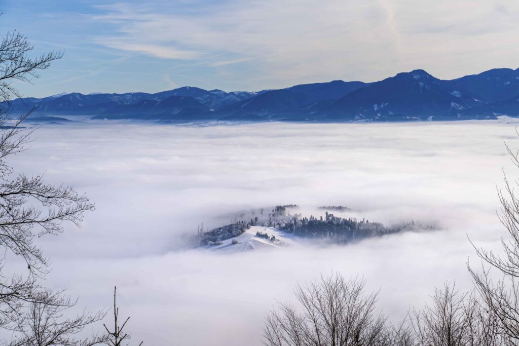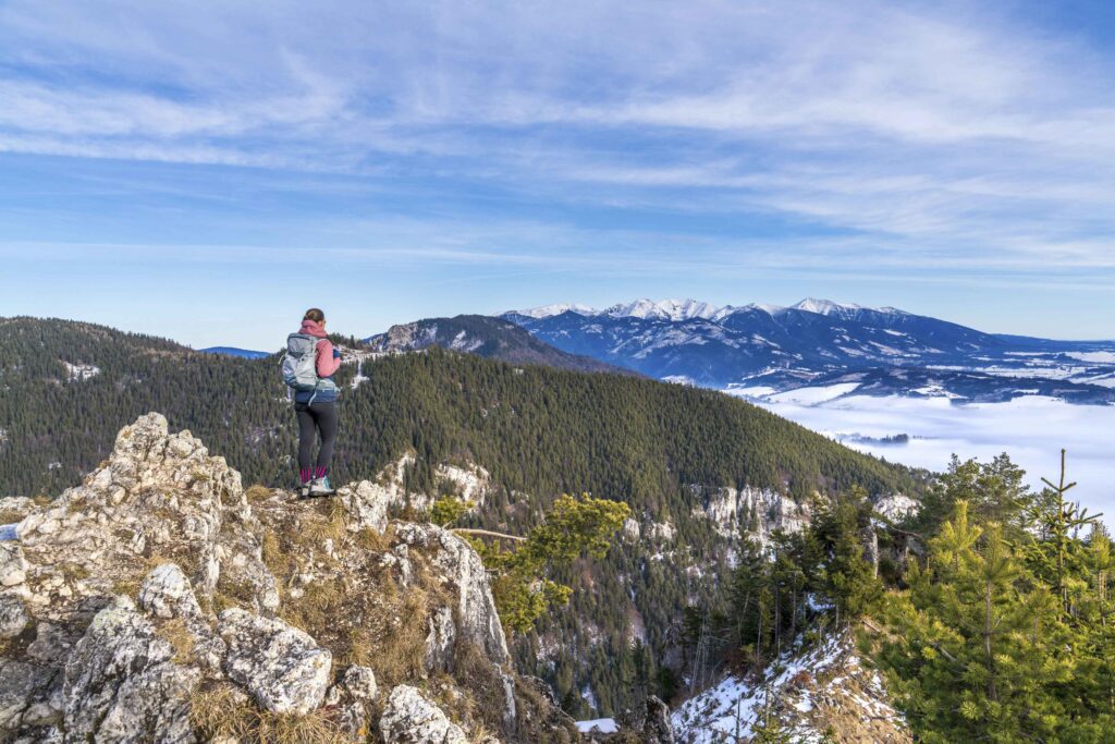 Po približne hodine stúpania sa dostávame na prvé vyhliadky, ktoré ponúkajú nádherné pohľady na Liptovskú kotlinu a okolitý reliéf. Tu sa oplatí spraviť prvú prestávku a vytiahnuť fotoaparát. Ranná inverzia často vytvára nad kotlinou závoj hmly, ktorý dodáva fotografiám mystický nádych. Pre najlepšie zábery odporúčam širokouhlý objektív, ktorý dokáže zachytiť majestátnosť krajiny. Naopak, ak chcete zarámovať určitý objekt ako napríklad Čereňovú skalu alebo Liptovskú Maru, majte nachystaný aj teleobjektív.